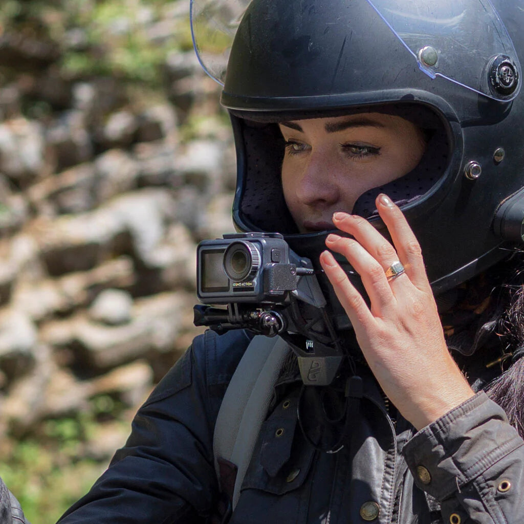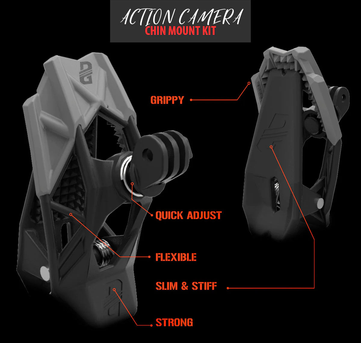 Dango Design gripper motorcycle helmet chin mount kit for GoPro / DJI / Drift action cameras. Have you tried the action camera on the top of your helmet and not liked the perspective?