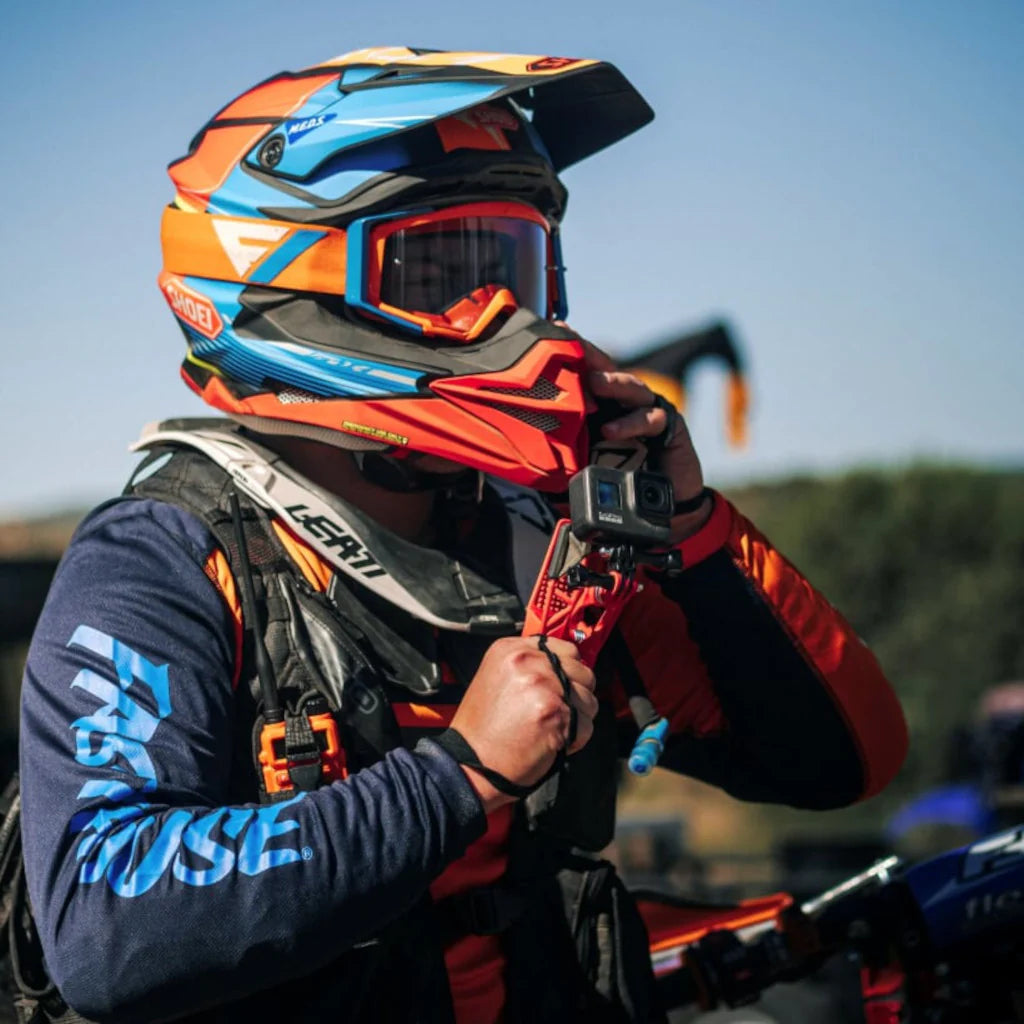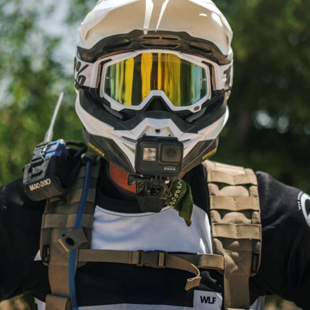 This strong and secure mount will grip onto the chin section of your helmet and allow you to adjust the camerato get the best view possible.