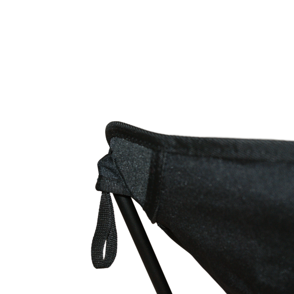 Easy-Pull-Loop we also added (again at time of writing) a World First Webbing Easy-Pull-Loop on each corner, this has 2 purposes, the first, obviously is making the chair easier and faster to assemble the chair base to the leg poles. Secondly and importantly, it doubles around the pole pocket to ensure that poles will not tear through the pole pocket fabric, again this makes it super robust and stronger than cheaper alternatives.