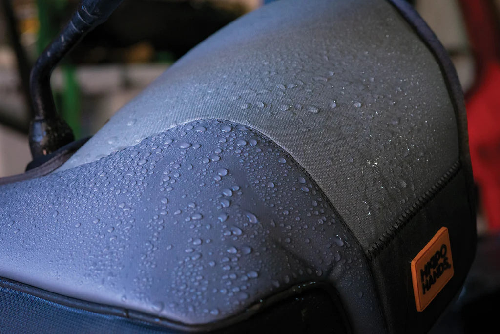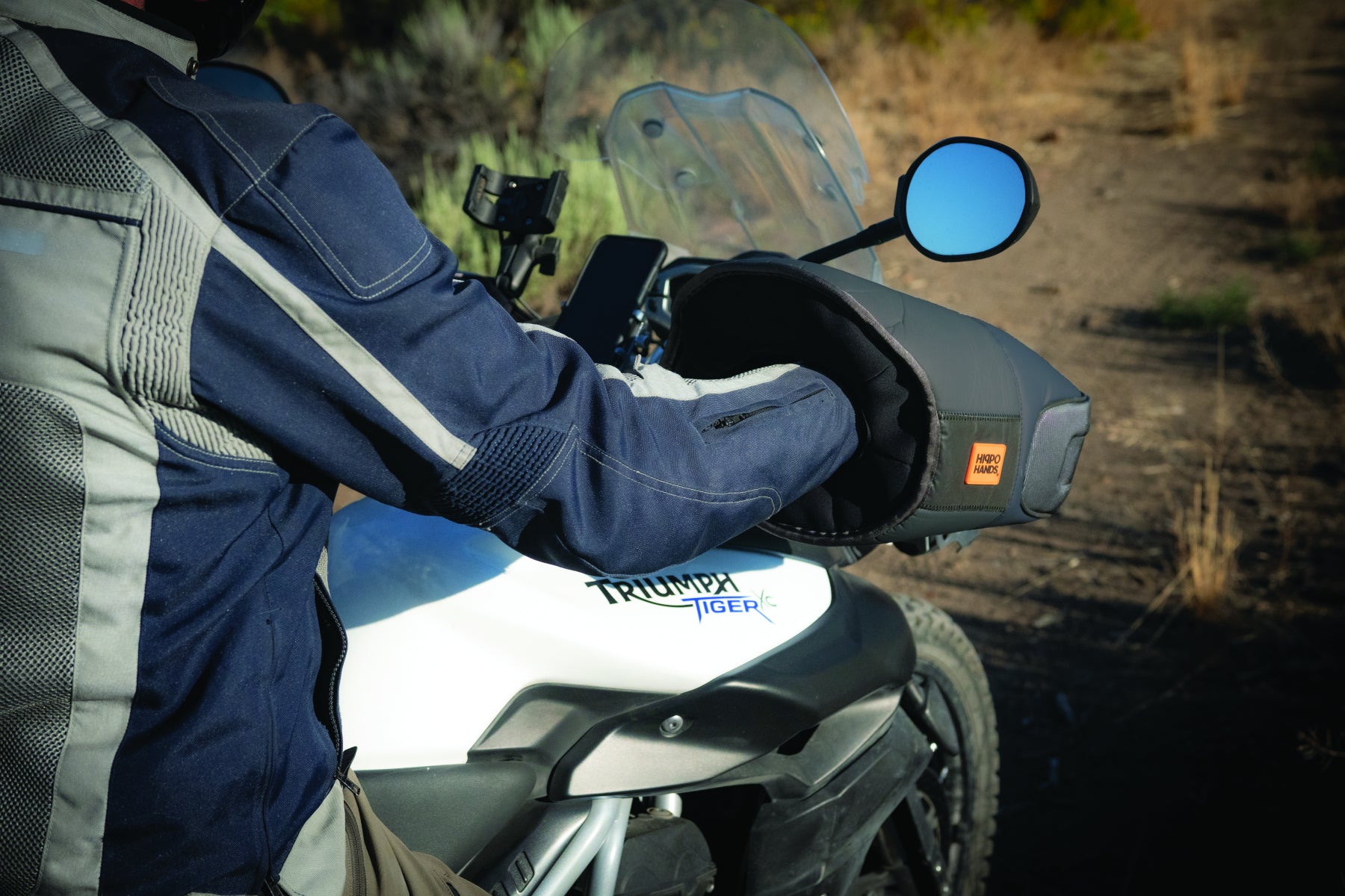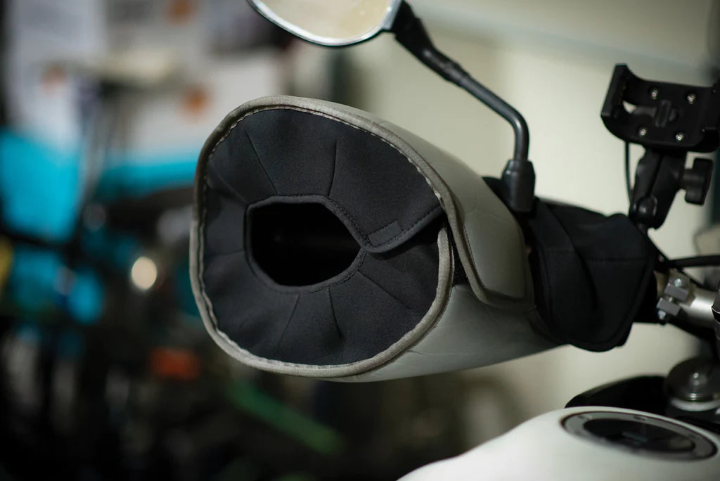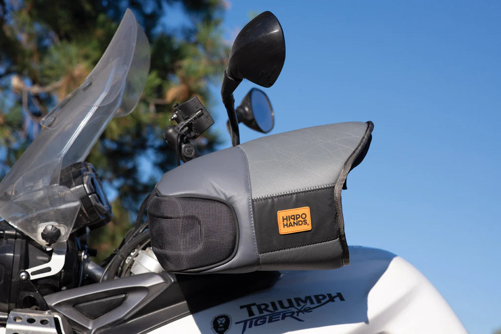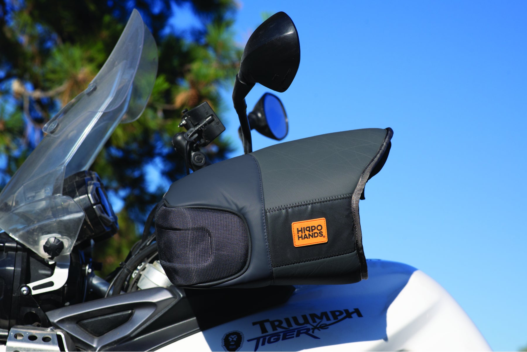 The Alcan™ is a maximum coverage, all-weather hand cover that fit adventure bikes, sport touring bikes, and many others. The Alcan is for riders who embark on cold and/or wet weather rides and tours. These are the absolute warmest hand covers on the market. It may not surprise you that they are covered with HippoSkin™, our waterproof outer shell, and insulated with a generous layer of HippoFat™, a warm, flexible, closed cell foam—both are designed to keep inclement weather away from your hands. The new Alcans also have a neoprene cuff around the opening, ensuring a tight fit and sealed off wind and rain. The cuff dramatically limits backdraft air into the area around the controls.