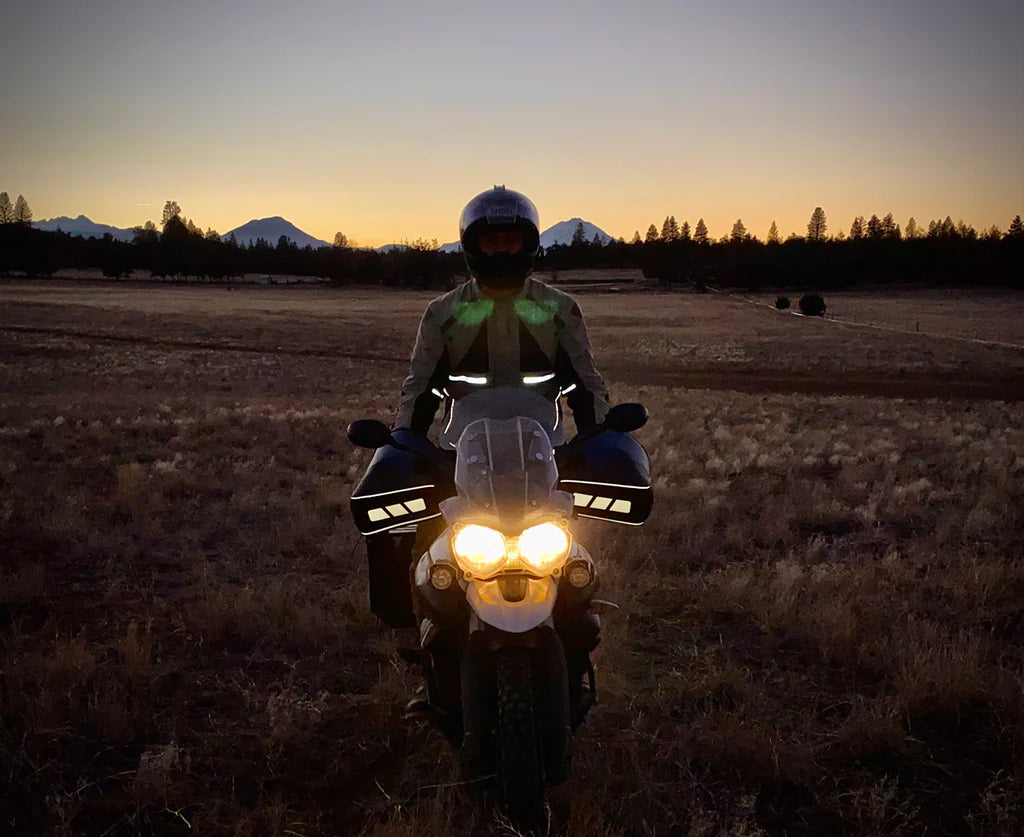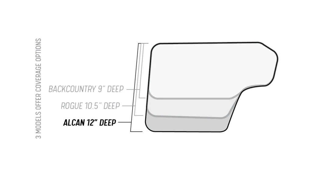 We designed them for the BMW GS, but Alcans fit most adventure bikes and sport tourers. The Alcan is the ultimate hand cover for all-weather riders. Alcans also have a generous, plush, quilted interior hand opening that stays open at high speeds. They are designed to be fitted over hand/brush guards. Alcans are 12" deep.