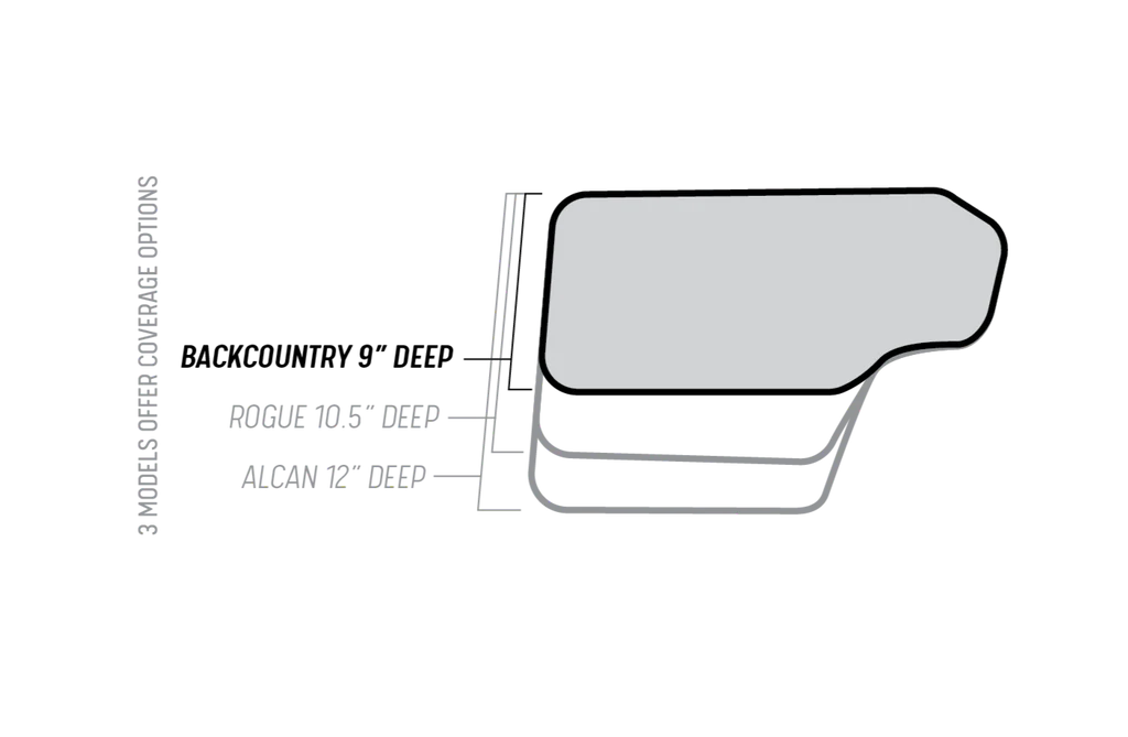 The Backcountry is 9" deep. If you like to stand and ride, this is the model for you! But… these hand covers also fit to just about any bike. They are even a great option for any cruiser, including Harleys with brush/hand guards (We recommend Memphis Shades for Harleys). They feature a durable, quilted interior and flexible, neoprene cuff which ensures a great fit on so many bikes. The Backcountry is our smallest, most easily adaptable hand cover.