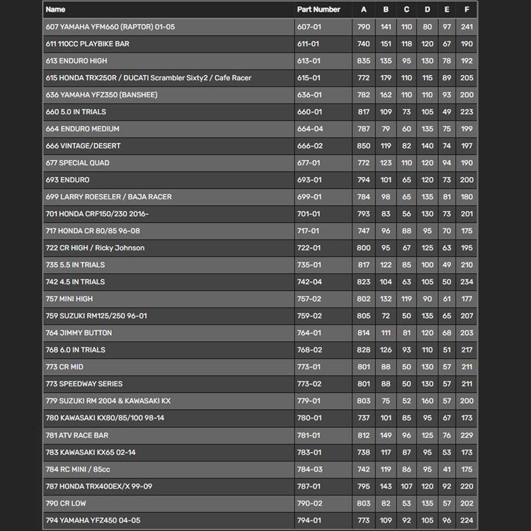 Great Handlebar upgrade to Honda CRF standard OEM cheese bars! No need to change clamps or get a conversion, these go straight on. Just make sure the width of the bend will work with your hand-guards, cannot be returned once the package is opened and you have tried to install it.... If you need a wider base before the bend get the ProTaper bars.