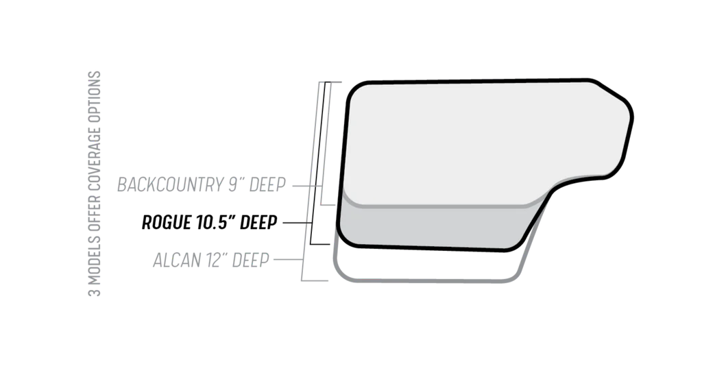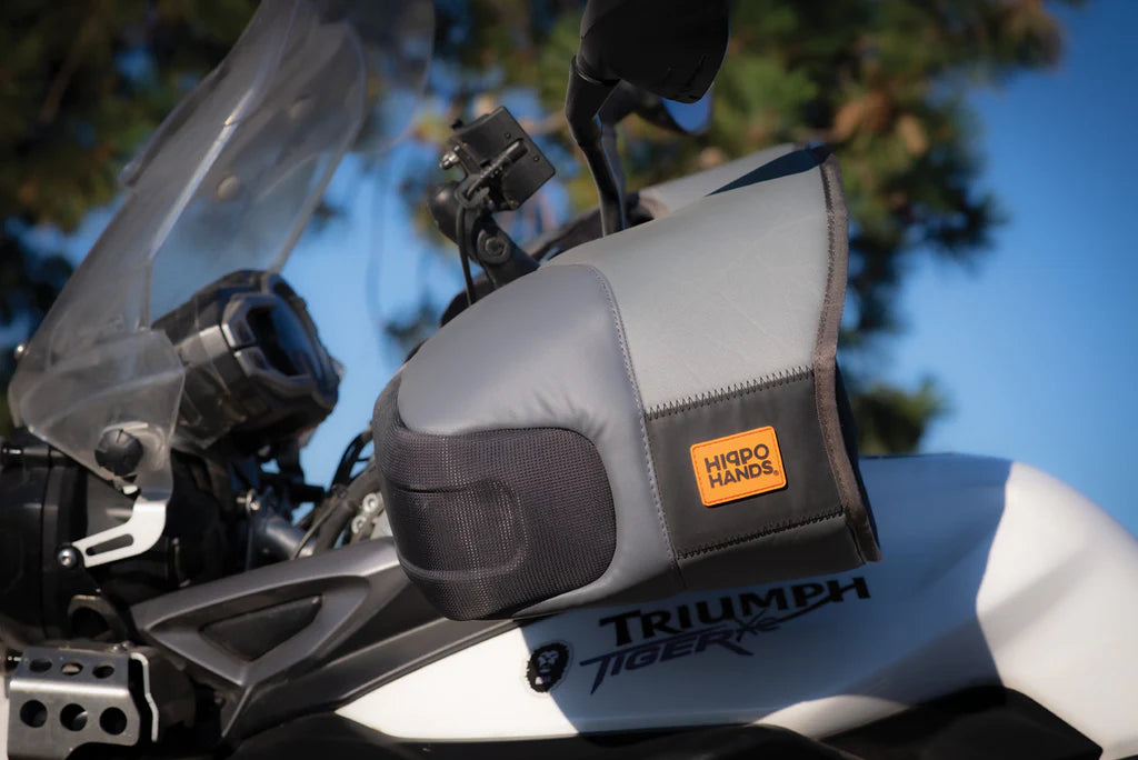 The Rogue™ model is an amazingly versatile, mid-sized hand cover — The protective shell provides all-weather coverage. It fits a myriad of adventure and sport touring bikes, as well as some scooters, and other bikes. It is our commuter riders’ model of choice. It offers a large hand opening that stays open at high speeds and they are designed to be fitted over brush/hand guards. The Rogue is 10.5" deep. The waterproof outer shell is our unbelievably durable, HippoSkin™, and insulated with a generous layer of HippoFat™, a warm, flexible, closed cell foam—both are designed to keep inclement weather away from your hands. The new Rogues feature gray HippoSkin™ protective outer shell and they look amazing!