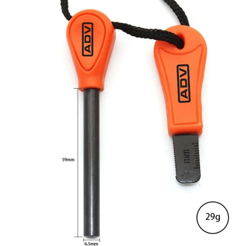The ADVenture Products Magnesium fire starter rod with strike. A simple magnesium fire strike to light your stove, bbq or anything else, it will work in any conditions, will give you literally hundreds of fire starters to a bit of tinder, cotton wool or light your gas stove.